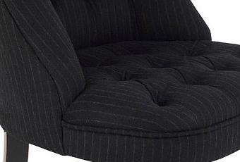 - le fameux fauteuil crapaud décliné dans un style très anglais avec son tissu en laine noir rayé blanc