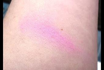 Voici donc ce blush, dans le pot, pis swatché. C'est un lavande rosé très très clair, et je suis in love in love in love. Il est encore plus beau sur les joues, et je suis bien déçue du rendu sur la photo. Très peu de produit suffit, et mon idole m'a conseillé de le mettre plutôt haut sur les joues. Donc, surtout, si vous le possédez, ne souriez pas avant de le mettre, et contentez-vous de l'appliquer sur le haut de la pommette, c'est ravissant.