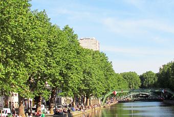 Il est plein d’atmosphère, hé oui, le canal Saint Martin, celui qu’Arletty rendit célèbre en demandant, tout à côté de lui (enfin d’une reproduction car bien sûr, Hôtel du Nord date de l’époque des studios), elle demandait avec tempérament si elle avait bien une gueule d’atmosphère… D’une atmosphère populo, dont il ne s’est pas complètement dépouillé avec ses centaines de badauds s’asseyant au bord de l’eau au moindre rayon de soleil, il s’est tout de même paré d’une sacré touche bourgeoise, même si bohême.