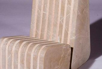 Voici une chaise peu banale en pierre et en bois. Afin de réduire le coût de production, Miquel Slava a eu l’idée de travailler avec des plaques de pierre de 4cm d’épaisseur, obtenues lors des premières étapes de la manipulation de la pierre. Il suffit ensuite d’intercaler des planches de bois pour obtenir un matériaux hybride esthétiquement des plus réussis. La création possède en plus une astuce ergonomique puisque l’assise peut être utilisée dans deux positions, une position basse fauteuil et une position haute chaise. La finition est impeccable.