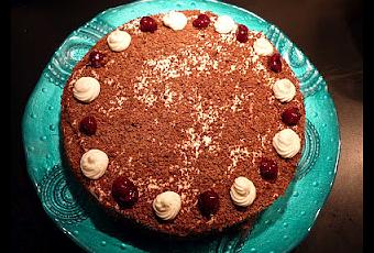 Et voici le gâteau d'anniversaire!! Ma belle-sœur est une grande amatrice de la célèbre Forêt Noire alors je me suis lancée le défis de lui faire un gâteau similaire.