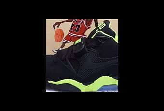Les sneakers sont en daim noir contrasté par des touches de volt sur la semelle intermédiaire, la doublure et le logo. Une semelle translucide vient compléter le tout.