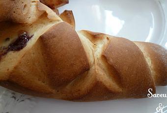 500gr de farine1 sachet de levure déshydratée50gr de sucre roux2,5dl de lait de coco1 oeuf40gr de beurre40gr de beurre de cacahuète4 c. à s. de confiture de fruits rougesDans le bol du robot, verser la farine, la levure, l'oeuf, le sucre et ajouter en filet le lait de coco, tout en pétrissant.Au bout de 5 minutes, une boule souple se détache des parois, ajouter alors le beurre et le beurre de cacahuète à température ambiante.Laisser reposer 1 heure à couvert.La pâte va doubler de volume.Dégazer la pâte et façonner.