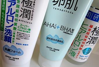 Lors de cette commande, j’avais acheté plusieurs produits de la gamme Gokujyun d’HadaLabo dont je lisais beaucoup de bien sur plusieurs blogs (c’est cet article sur le blog d’Anthisei qui m’a définitivement convaincue d’ailleurs ^^) : le nettoyant visage, le nettoyant AHA-BHA et la lotion Super Hyaluronic Acid.