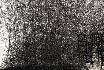Née en 1972 à Osaka au Japon, Chiharu Shiota est une artiste qui vit et travaille depuis les années 2000 à Berlin. L’artiste semble avoir une certaine obsession pour les arachnides et autres toiles d’araignées. La preuve avec cette installation actuellement exposée à New York à la Galerie Goff + Rosenthal. Des fils de laine noire à perte de vue dans tous les sens, dans tous les coins et recoins de la salle d’exposition, du sol au plafond. Le piano intitulée « In Silence » a été brûlé avant d’être emballé. Cette oeuvre est une réponse artistique et émotionnelle à un incendie qui a frappé son coeur. Une réflexion sombre sur la mort et l’embaumement, ici l’embaumement des choses.
