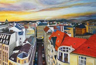Coucher de soleil sur les toits de Vienne (Autriche) Un cours de peinture à l'huile