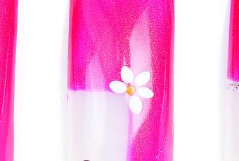 1. Vernir les 3/4 de l'ongle avec un rose métallisé. Vous pouvez utiliser un liner pour faire les bords bien nets.