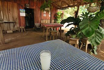 Sur la route de Nicoya, nous été intriqué par ces petits "boui-boui" qui annoncent au feutre noir le mystérieux "Vino" sur des cartons... Toujours hésitant, roulant depuis 2-3 km et ne voyant plus les kiosques, nous faisons demi-tour pour finalement décider de nous risquer. Nous arrêtons sur un terrain privé d'où un homme sert le breuvage dans une cabane annexé à sa maison. Il nous propose un 2 litres que nous achetons après avoir goûté un verre. Le breuvage de couleur blanchâtre est assez fort, mais très rafraichissant puisqu'il est servi froid.