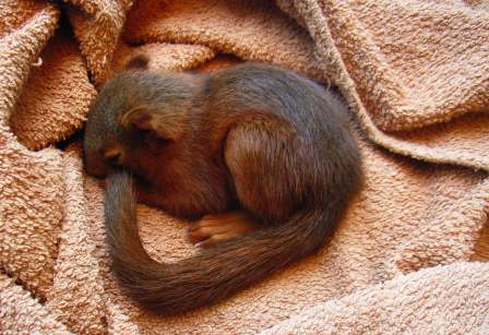 Et oui garder un animal sauvage est interdit. Mais elle serait morte... et elle ne fera qu'un bref séjour parmi les hommes. Juste de quoi passer du lait pour chaton à l'alimentation d'un adulte, passer de 70g à plus de 150g, apprendre l'équilibre et savoir ouvrir les coques! (prochain billet)