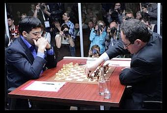 Le compte rendu de la 12e partie : Cela aura été un match plutôt ordinaire, mais il ne peut y avoir d’ex-æquo à la fin, les règles ne prévoit pas cette possibilité. Après une ouverture Sicilienne Rossolimo et de nombreux échanges de pièces, Vishy Anand s’est retrouvé en finale avec un pion en plus, avantage d’autant plus marqué que Boris Gelfand n’avait plus que 15 minutes à la pendule pour exécuter ses 18 derniers coups. Et patatras, l'Indien propose nulle. Ce sera donc une première, la désignation du champion du monde d’échecs se fera soit en cadence rapide, voire en blitz !