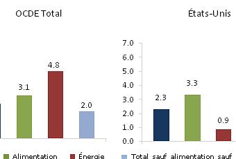Entre mars et avril 2012, les prix à la consommation dans la zone OCDE ont augmenté de 0,3%. Ils ont augmenté de 0,6% au Royaume-Uni, 0,5% en Italie, 0,4% au Canada, 0,3% aux États-Unis, 0,2% en Allemagne, 0,1% en France et au Japon.