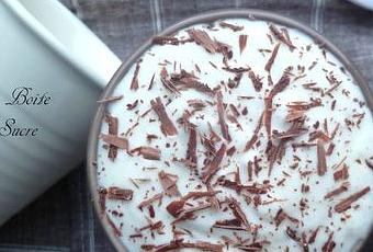 Dans un saladier mettre le blanc d'oeuf directement avec la crème et commencer à monter au fouet électrique. Quand la crème est bien montée, serrer en ajoutant le sucre. A la fin, ajouter des copeaux de chocolat et mélanger délicatement à la cuillère en bois. Verser dans les verrines et garder au frais.