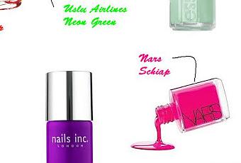 Bonsoir! Avec notre thématique de la semaine, nous ne pouvions pas passer à côté d'une petite sélection néon de vernis à ongles! Les vernis n'ont jamais été aussi populaires et les marques rivalisent d’imagination pour orner nos mains et nos pieds des couleurs les plus originales.... Petit tour d'horizon: