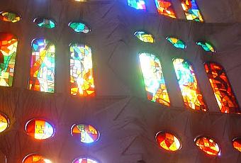 *source photo vitrail Sagrada Familia en Espagne"Mais plus encore, c'était le matin qui était beau, au réveil, quand les premiers rayons du soleil traversaient les carreaux de verre. Quand Quelqu'un avait de la chance, il y avait des arbres derrière les vitraux, et le vent soufflait. Alors la lumière et l'ombre alternaient à l'intérieur de l'église. Et si la lumière du soleil traversait les carreaux de verre rouge, elle s'empourprait. Elle sautait sur les bancs, la table de l'autel, les tableaux, les statues. A certains instants tout était tacheté de pourpre, à d'autres il n'y avait plus que quelques points rouges, et soudain toute l'église s'enflammait."