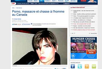Le site français 20minutes.fr a produit trois de ces 1300 articles, en plus de mettre à la disposition de ses internautes un diaporama construit à partir de captures d’écran de la vidéo tournée par Magnotta, pendant qu’il tue et découpe sa victime en morceaux, vidéo que le Service de Police de la Ville de Montréal a retiré de la toile.