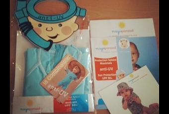 ★ Le petit truc en plus pour les maillots anti UV : comme beaucoup de bébé mon petit bout a la peau de fragile et, comme beaucoup de mamans, j’aime pas trop l’enduire de produits chimiques (genre crème solaire). Et les « mayo parasol » (mouillé ou sec) stoppent 98% des UV. Avec ce type de produit, on minimise la surface à enduire