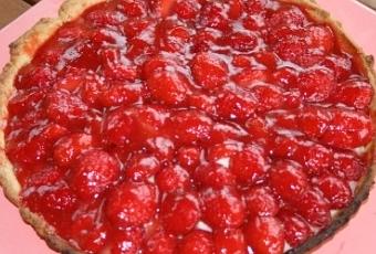 Dresser la tarte : etaler la creme patissiere sur le fond de pate. Garnir de fraises coupées en deux puis étaler le nappage au pinceau. Le nappage est un peu liquide au début mais il va se solidifier en refroidissant, il faut donc le préparer au dernier moment.