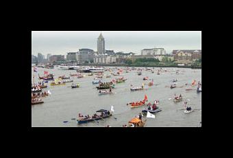 Kayaks, baleiniers, bateaux-dragons, péniches ou gondoles: tout ce que la marine a pu inventer comme bateaux, à voile, à vapeur, à rames ou à moteur, avait commencé à converger dans la matinée vers l'ouest de la capitale pour ce spectacle "historique". Avec 20.000 personnes à bord, c'est, dit-on, une des plus grandes flotilles jamais rassemblées sur la Tamise. Sans compter, au milieu de ce déploiement, des bateaux de croisière convoyant des groupies de la monarchie, munies de drapeaux. 190 bateaux seront aussi à l'eau pour assurer les secours et la sécurité du cortège.