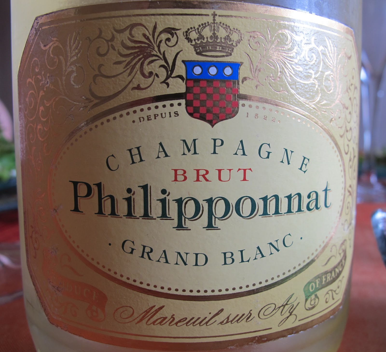 Avec une salade de carpaccio de saumon mariné, deux vins nous ont été proposés. Champagne Grand Cru, Grand Blanc 2004 de chez Philipponnat : impressionant de minéralité crayeuse. C'est très floral, puissant, une belle vivacité. Touches lactées agréables en finale, qui voit le retour d'un crayeux noble, animé d'une granulosité tout en finesse, presque saline. Fascinant malgré sa jeunesse. Excellent