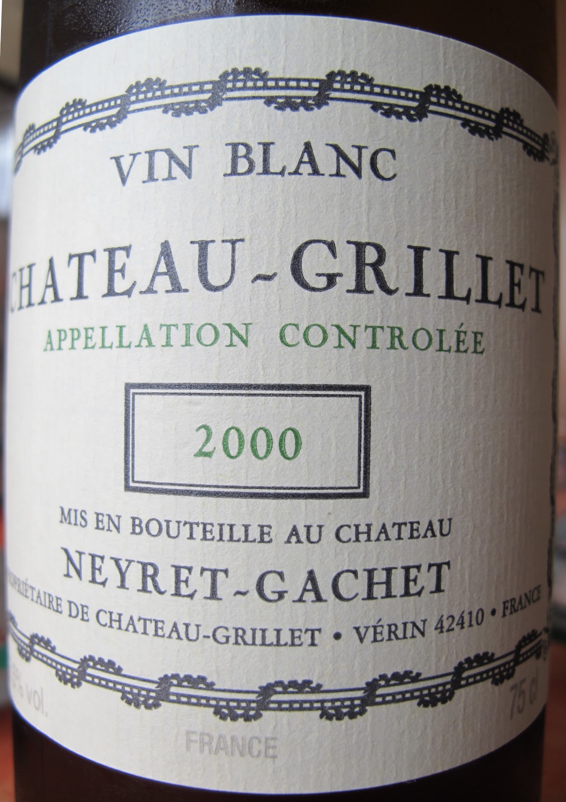 Château Grillet 2000 : J'avoue être un peu passé à côté de ce vin. C'est très floral au nez, presque trop subtil, mais avec une pointe de verdeur (sous-maturité). Cela m'évoque plus l'équilibre nasal d'un jeune chablis que celui d'un Viogner de noble race. La bouche est grasse, ample, aromatique, mais manque un peu de distinction et de complexité (phase de fermeture ?). Sur un registre gras sur gras avec le saumon, le vin ne se livre pas de la meilleure façon (à revoir ?). Bien+