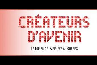 Le top 25 de la relève au Québec a été officialisé, il y a quelques jours, par les membres du jury du concours Créateurs d’Avenir. Un gala aura lieu le 15 juin prochain à l’Excentris pour connaître notamment les 4 récipiendaires des bourses dont une bourse sera remise à la personne ayant récolté le plus de votes en ligne et trois autres bourses seront remises selon 3 grands axes :
