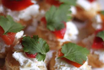 des Hanazushi, des mini paupia vietnamiens au miel, des petite brochettes melon-mozza-menthe, des wraps de jambon au boursin, des champignons farcisail et fines herbes gratinés et d'autres surprises ! Sur la photo, il s'agit de la recette des feuilletés chèvre poivron que vous pouvez retrouver ici.