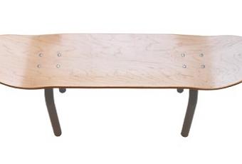 Un petit banc en bois dont l'assise est inspirée d'une planche de Skateboard !