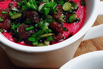 Les mélanger avec les raisins, les graines de citrouille et une goutte d'huile d'olive avant de répartir sur le dessus de la soupe.