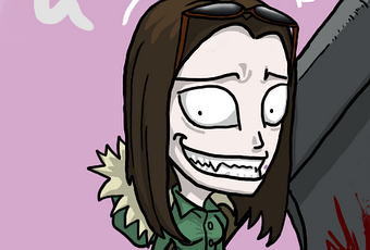 Voici Hello. Il s'agit d'une jeune psychopathe aux proportions de type chibi. Ce personnage va ultérieurement me servir de défouloir sur de nombreuses mascottes créées par l'industrie de l'animation, de la communication, ainsi que d'autres entités ! Je ne sais pas moi-même s'il faut y voir un message... mais elle... elle n'a aucune pitié ! Vous êtes prévenus...