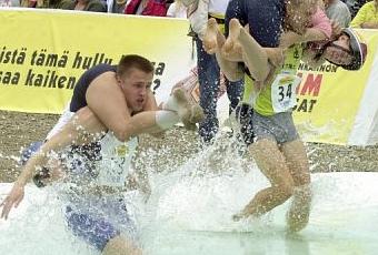 La Finlande est parsemée d’habitants décidément à l’humour décalé dans le sport. Après le football dans le marais, ils organisent les Championnats du monde de porter d’épouse. La discipline vient de la municipalité de Sonkajärvi depuis 16 ans. Les concurrents doivent effectuer le plus rapidement possible un parcours d’obstacles. Mais qui sont ces concurrents ? Une équipe comporte le mari qui doit porter sa femme sur ces épaules. Devant plus de 6 000 spectateurs, ces compétiteurs parcours les 235.50 mètres, le bassin d’eau d’un mètre de profondeur et les deux haies. Chaque année, les principaux prétendants au titre sont finlandais et estoniens (parmi une dizaine de pays). La discipline est pratiquée également à Hong Kong et aux Etats-Unis.