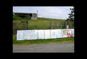 Des panneaux en très mauvais état avec des restes de la campagne présidentielle de 2007 (Shivardi)