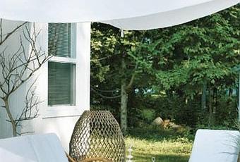 Et parce que l’ombre est tellement agréable en été pour y feuilleter ses magazines déco préféré et siroter un bon thé glacé…Je vous suggère quelques voilages discrets et de bons gros coussins bien épais !