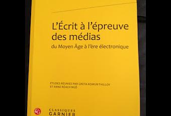 Greta Komu-Thilloy, Anne Réach-Ngô, L'Ecrit à l'épreuve des médias du Moyen Age à l'ère électronique, Paris, Classiques Garnier, 2012, 514 p. Index, 48 €