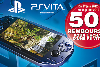 C’est arrivé ce matin dans ma boite mail, Sony fait une offre de remboursement différé de 50€ sur la PS Vita (modèle Wi-fi et modèle 3G) en version « Nue » pour une console achetée du 1er Juin au 15 Juillet. Comme pour toutes les offres de remboursement différé, il faut renvoyer une preuve de votre achat (ticket de caisse + code barre) avant la date limite (20 Juillet). Le remboursement interviendra dans un délai de 6 à 8 semaines.