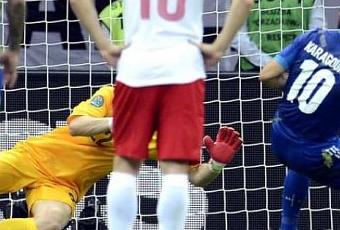 Du coup, malgré son infériorité numérique, c’est la Grèce qui prend le jeu à son compte. C’est dire… La qualité technique est fortement retombée mais pas les émotions. A force de titiller la défense, Salpingidis se retrouve seul face à Sczcesny qui ne peut empêcher de crocheter l’attaquant. Pénalty + dernier défenseur = carton rouge. Le soi-disant taulier de la défense vient de poignarder son équipe en vingt minutes. Puisqu’il faut bien mettre un gardien, c’est Tyton, troisième gardien habituel derrière les deux d’Arsenal (Fabianski est forfait) qui s’y colle. Et qui va repousser le pénalty de Karagounis! On a peut être pas le spectacle footballistique mais on tient le premier scénario fou de la compétition. Et c’est encore mieux.