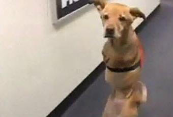 Grâce a l’amour de ses maîtres, avec patience et temps, ils lui ont appris a se débrouiller qu’avec ses pattes arrieres.