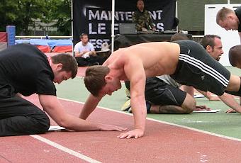 Retour sur la 1ére édition du Reebok CrossFit Fitness Championship 2012, je ne vous ai pas dévoilé toutes mes photos. Je replante le décor, nous sommes le 19 mai au stade Géo, à côté du parc des Princes pour la demi-finale. Cet athlète blond aux yeux bleus est le balaise de l'avant-dernier groupe, il vient de terminer ses 50 tractions et attaque les 100 pompes.