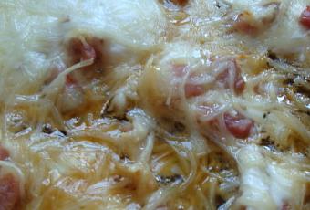 ajoutez la créme fraiche, quelque lardons, et du gruyére.