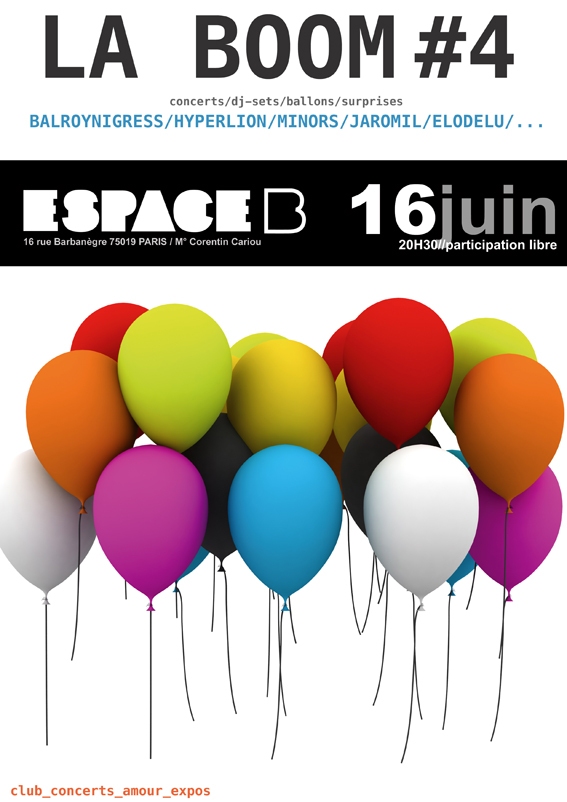 Vincent, aka Bill Van Cutten, aka Hyperlion, aka homme à tout bien faire de l’Espace B, se tire de Paris. Comme s’est un garçon bien éduqué il fait une fête, une boom, un truc bien sous tout rapports, avec une foultitude d’invités de marque pour animer ce joyeux bordel. Pêle-mêle, son pote et confrère Jaromil, les Parigots-Suédois de Balroynigress (salués par Tiny Mix Tapes), les Parigots-Toulousains de Minors, et Hyperlion lui-même, en plus de quelques DJ-sets, sauce épicée. L’entrée est libre, on peut payer des bières aux artistes et vous connaissez l’adresse.