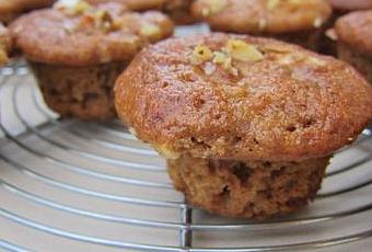 Répartir la pâte dans des moules à mini-muffins (s'ils sont en silicone, inutile de les beurrer et les fariner). Saupoudrer de noix concassées et enfourner aussitôt. Laisser cuire environ 20 min environ : pour vérifier la cuisson, planter une pique en bois , elle doit ressortir sèche. Démouler les cakes une fois qu'ils sont complètement refroidis.