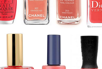 YSL - Corail Colisé OPI - OPI on collin avenue Chanel - Orange Fizz Chanel - Miami Peach Dior - Riviera Dior - Orange Psychédélique Essie - Peach Daiquiri Estee Lauder - Coral Reef Essence - It Peace Nubar - Amazon Coral Nubar - Red Sea Coral