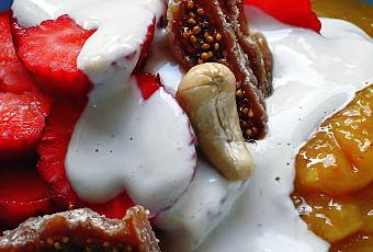 3 belles fraises1 figue sèche1 noix de cajou
