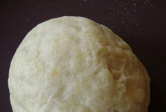 3) Verser un peu d'eau et pétrir jusqu'à l'obtention d'une boule de pâte souple.