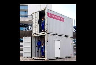 Le concept est surprenant : du théâtre dans un conteneur. Mieux encore, du théâtre dans deux conteneurs empilés l’un sur l’autre : deux scènes superposées. La comédienne se hisse à la force de ses bras d’un niveau à l’autre pour s’adresser tantôt à un public tantôt à l’autre.