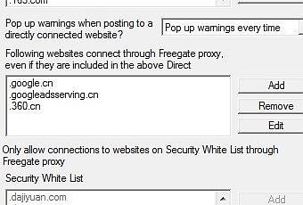 Lorsque vous démarrez l’application pour la première fois, la fenêtre des proxy apparaît. Il vous permet de créer des listes de sites Web pour se connecter par le biais Freegate.