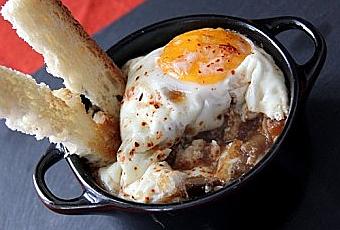 J'ai "ouvert" l'oeuf pour vous montrer la piperade, le résultat à la base étant evidemment lisse.