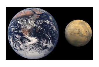 « Mars est la quatrième planète par ordre de distance croissante au Soleil et la deuxième par masse et par taille croissantes sur les huit planètes que compte le Système solaire. Son éloignement au Soleil est compris entre 1,381 et 1,666 UA, avec une période orbitale de 686,71 jours.