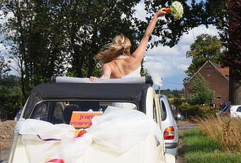 Pour la petite anecdote, nous sommes tous les 2 fans de 2CV, alors mon père et mon beau frère nous ont retapé entièrement une titine qu'ils nous ont offert le jour J ! Les sièges ont été refait avec des jeans des membres de la famille, et des stickers du taj mahal ont été posés sur les portières ! C'est probablement le plus beau cadeau qu'on puisse nous faire !