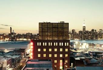 Situé au cœur de Brooklyn, Wythe Hôtel est un hôtel de 8 étages sur le front de mer de Williamsburg. Construit en 1901, cette ancienne usine textile a été méticuleusement transformé en un hôtel de 72 chambres offrant un service et des équipements inédit dans le borough, tout en conservant le caractère industriel du bâtiment – comme son entrée en angle concave, les poutres de pin d’origine, la maçonnerie, des fenêtres en arc et des colonnes de fonte. Tout au long de l’hôtel, les chambres disposent de 4m de hauteur sous plafonds en bois d’origine, de grandes fenêtres, de planchers de béton de chaleur, d’œuvres d’artistes locaux. De nombreuses chambres disposent de vue sur les toits de Manhattan et l’East River du sol au plafond.