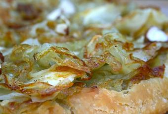 - huilez un moule à tarte et disposez les lamelles de fenouil au fond du moule en alternant avec le fromage frais émietté
